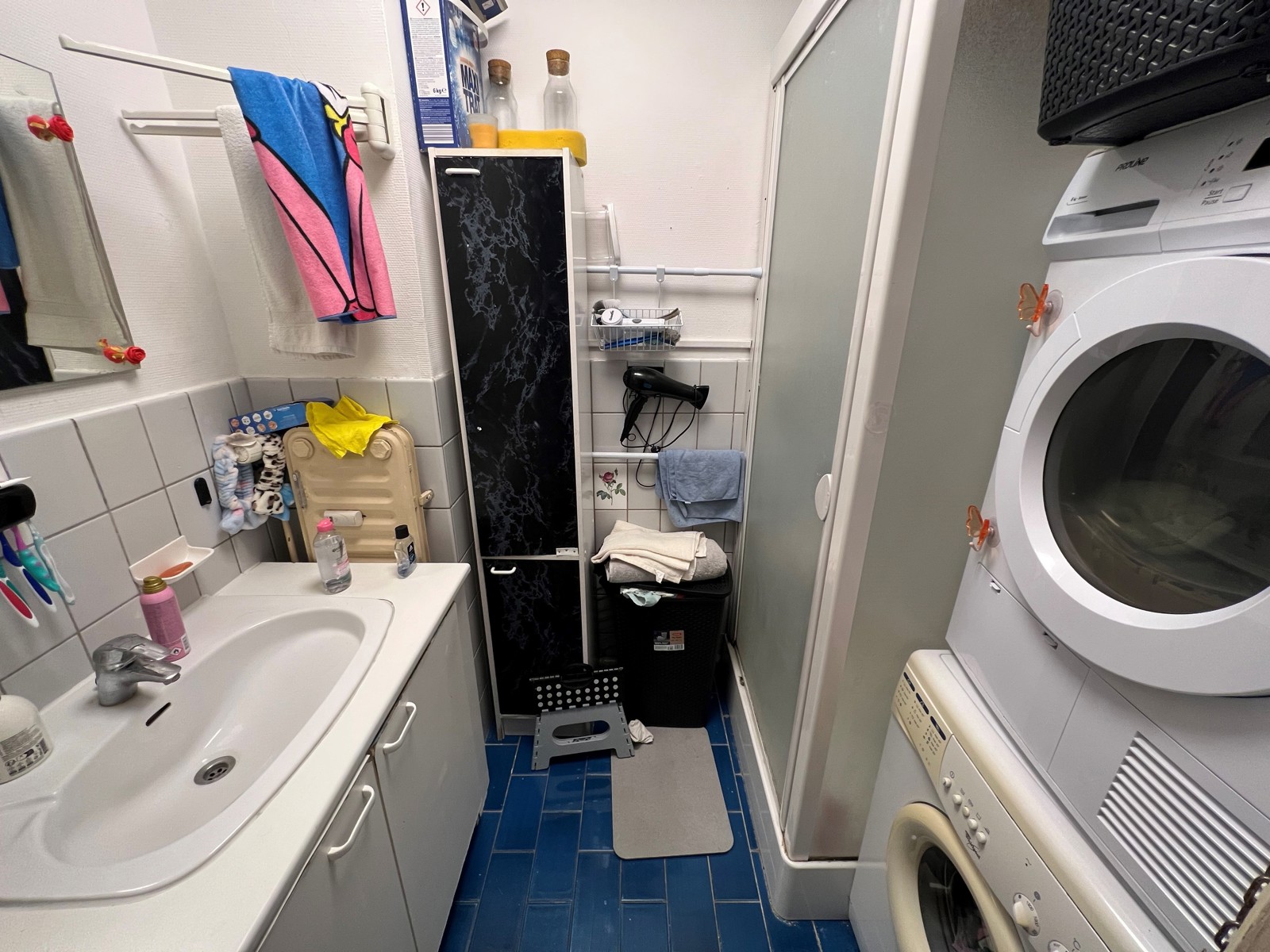 Le bien se compose comme suit: hall d'entrée avec placard, grand séjour avec terrasse, cuisine équipée avec terrasse, 2 chambres de respectivement 16m² et 10,5m², une salle de douches avec espace machine et une toilette séparée.
