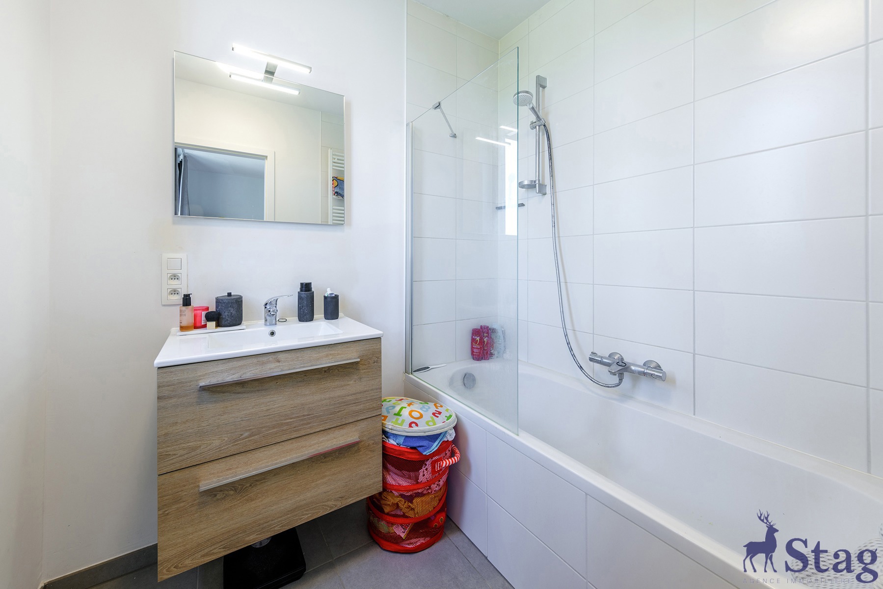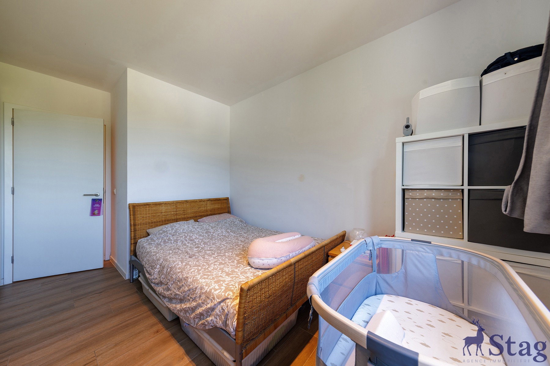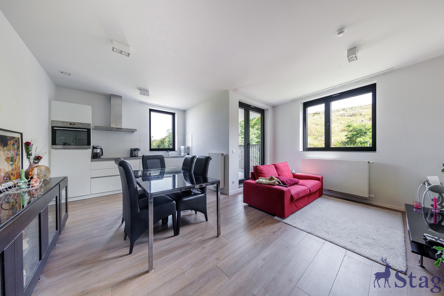 Situé au 2ᵉ étage d’un immeuble de standing récent construit en 2019, au cœur d’un environnement calme et verdoyant tout en restant à proximité immédiate des commerces, écoles et transports en commun, cet appartement 1 chambre séduit par son confort, sa luminosité et ses prestations soignées. Il se compose d’un hall d’entrée, d’un spacieux séjour baigné de lumière avec accès direct à une agréable terrasse, d’une cuisine moderne entièrement équipée ouverte sur la pièce de vie, d’une buanderie avec espace pour machine, d’une chambre de 13 m², d’une salle de bain avec baignoire et douche dans le bain, ainsi que d’un WC séparé. L’appartement bénéficie également d’un emplacement de parking souterrain, d’une cave privative et d'un emplacement vélo dans un local sécurisé prévu à cet effet.