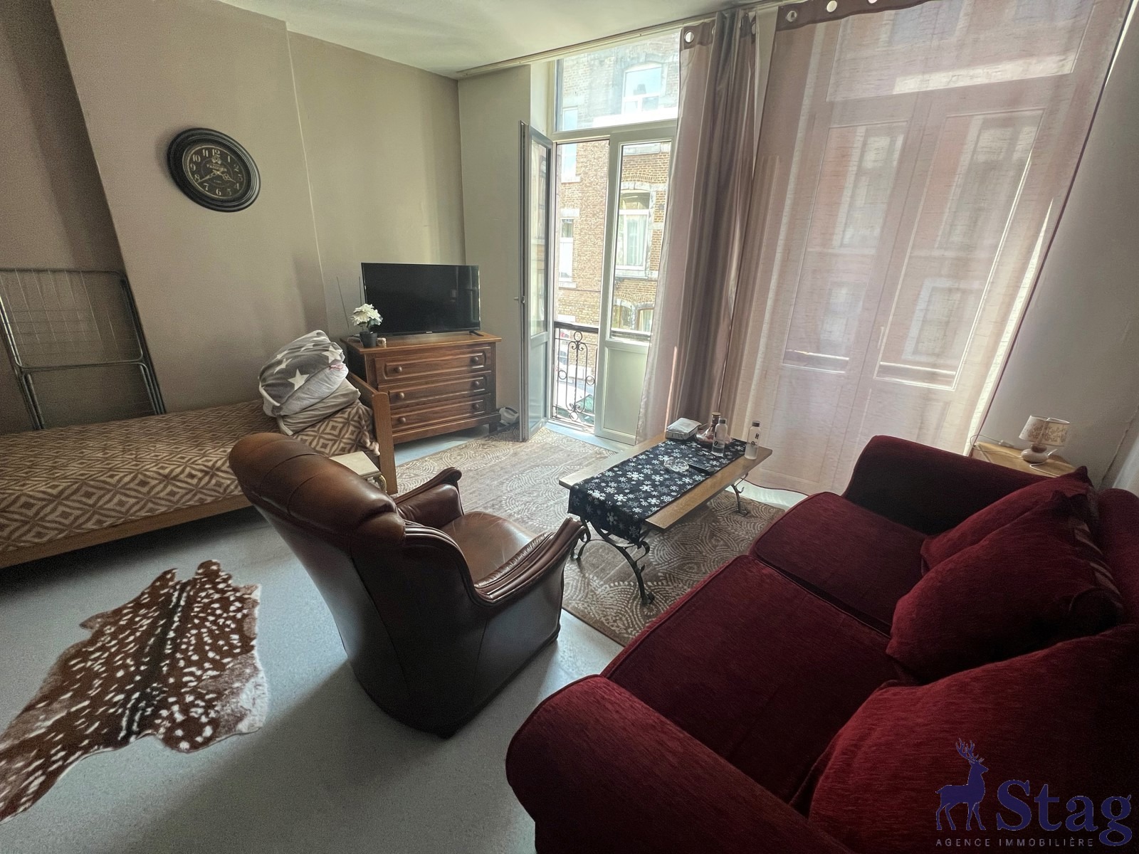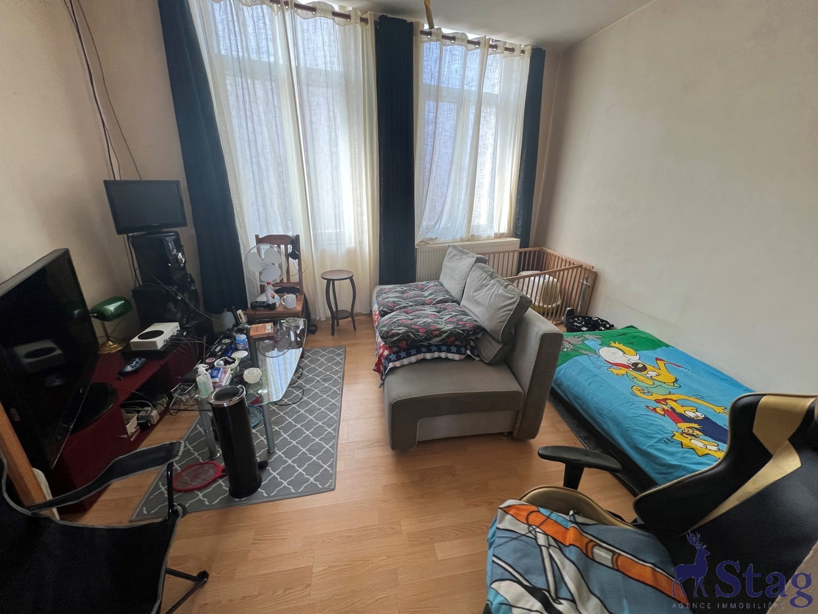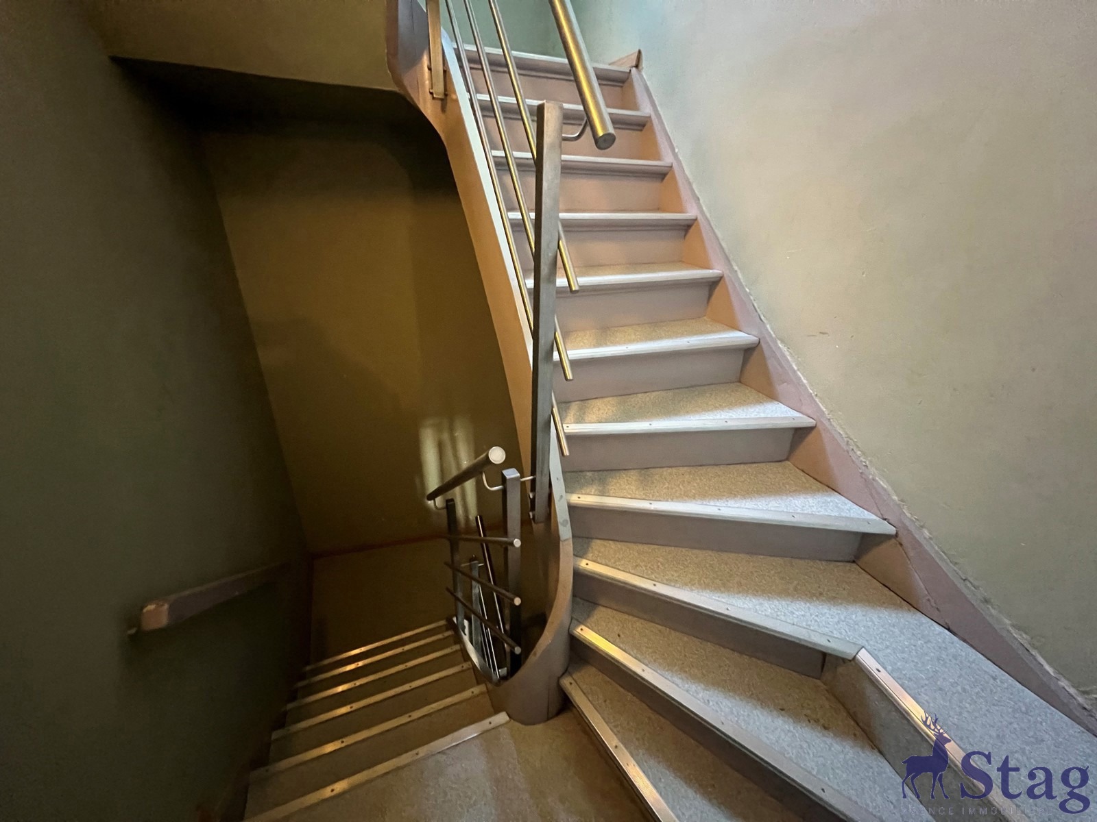 Au 2ème et 3ème étage: duplex comprenant un living de 14m², une cuisine, une grande chambre de 25m², 2 salle de douches avec wc et un espace bureau en mezzanine.