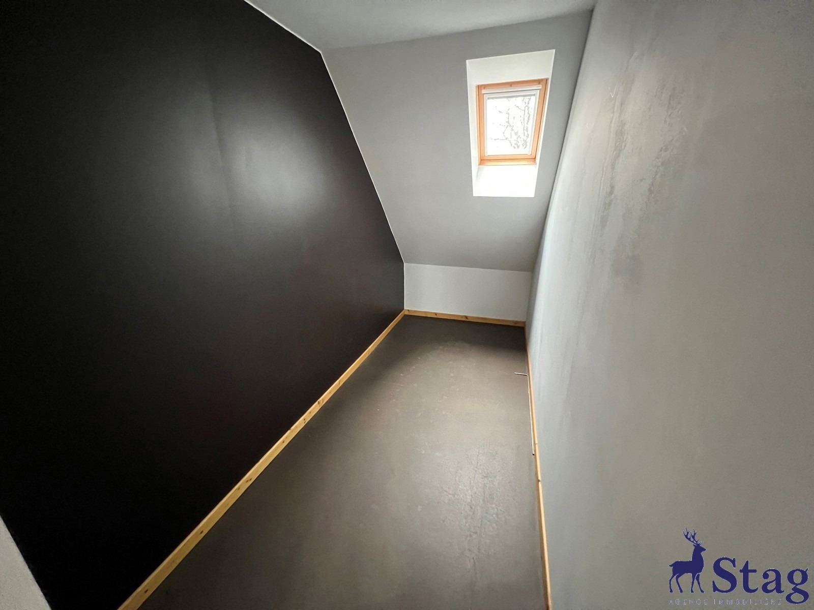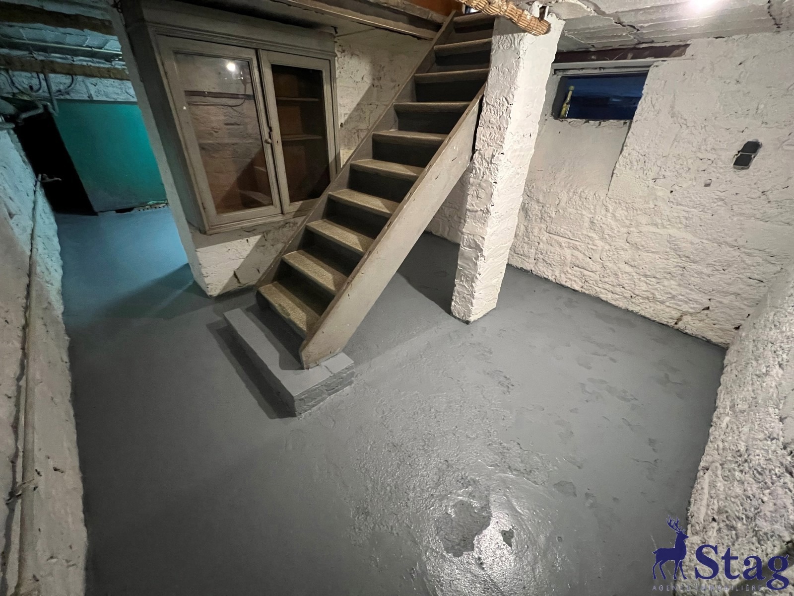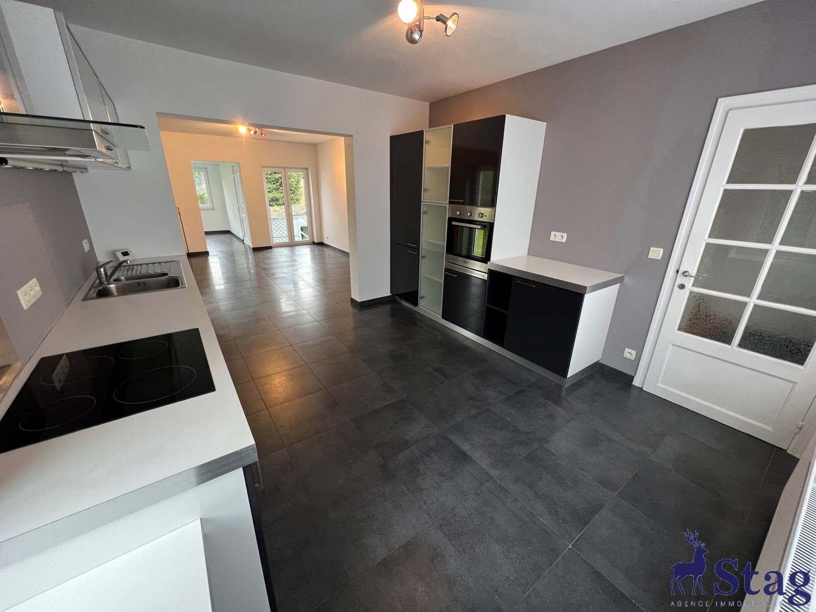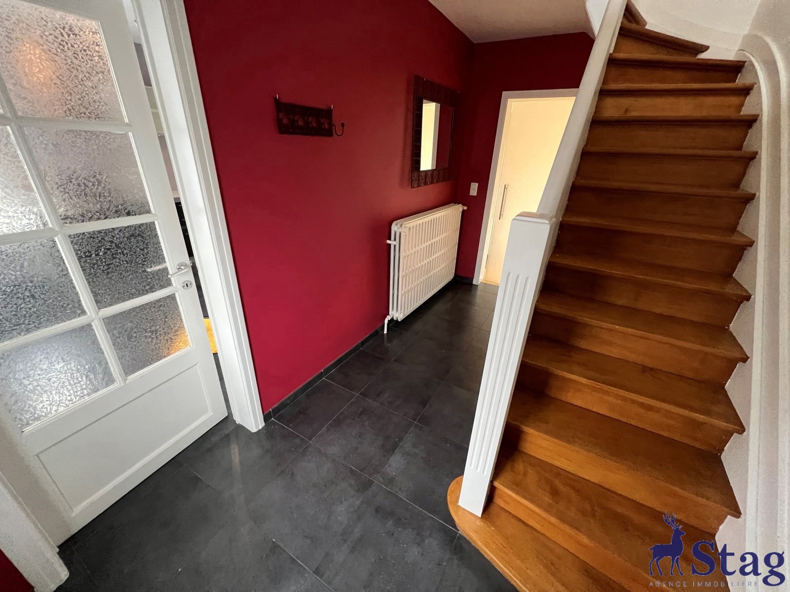 Le bien se compose comme suit : Rez-de-chaussée : hall d’entrée, vaste séjour lumineux avec salon et salle à manger, cuisine américaine super équipée, bureau avec accès direct au jardin, salle de bains avec toilette, escalier vers les caves. Au 1er étage : hall de nuit desservant trois belles chambres de 16,28 m², 15,60 m² et 14 m², ainsi qu’un bureau. Au 2e étage : grenier de 25 m², facilement aménageable, accessible par un escalier escamotable. Le sous-sol offre 50 m² de caves, comprenant une chaufferie avec cuve à mazout de 1200 L. Deux garages complètent l’ensemble.